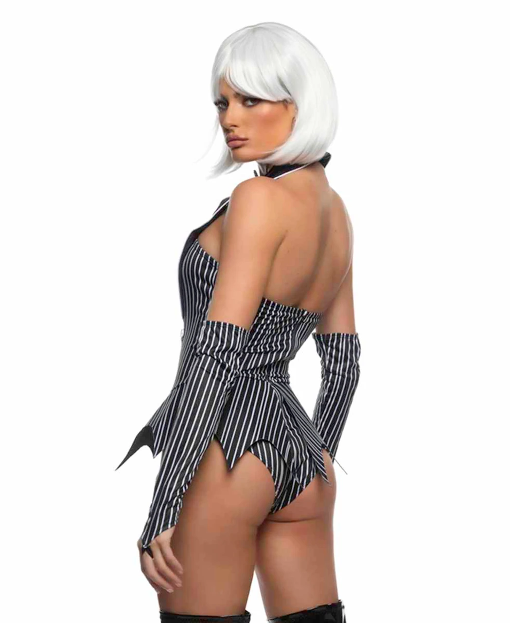 3pc Halloween Town Babe, Includes: Printed knit stripe peplum romper, gloves, & skull bowtie