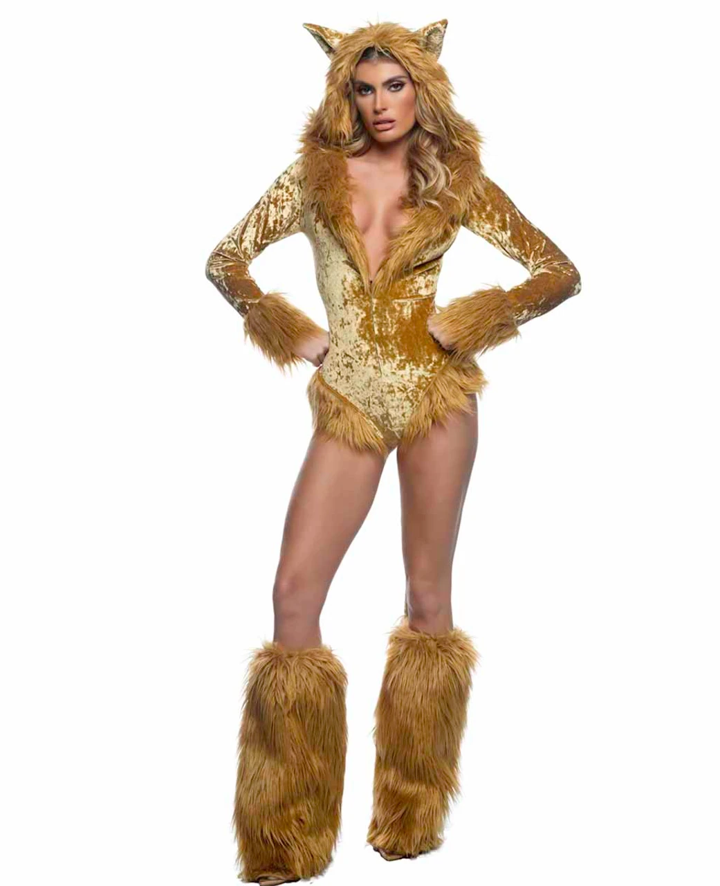 1pc Lusty Lioness Includes: Panne velvet and faux fur hooded bodysuit with tail. *Leg Warmers Not Included*