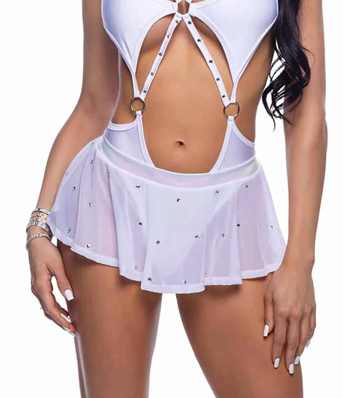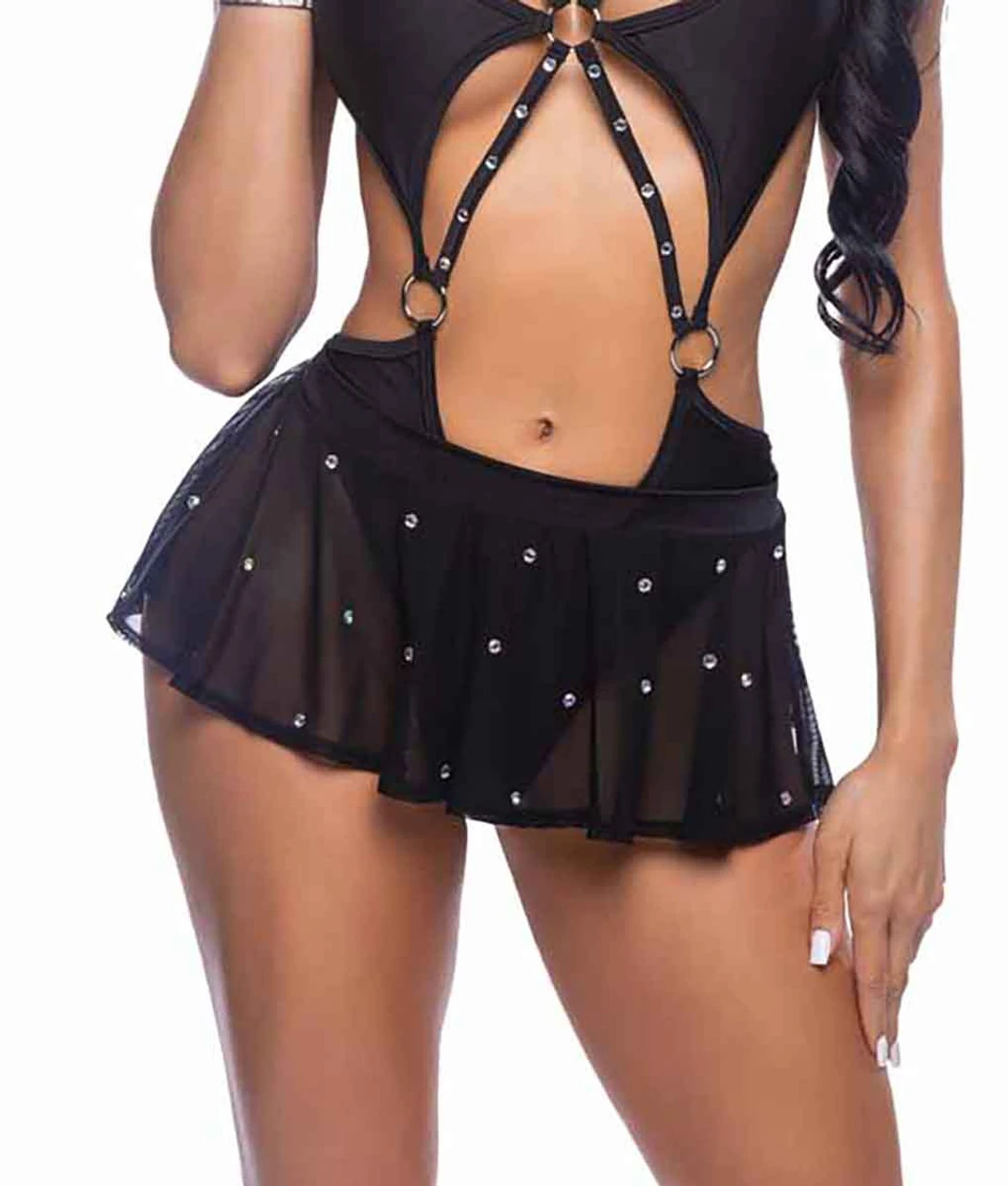 Bedazzled Mesh Mini Skirt with Rhinestone Detail