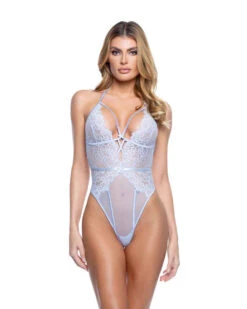 Floral stretch eyelash lace and mesh, Plunge bralette cup, Satin trim & ribbon bow detail, Cotton gusset, Single string thong back