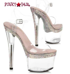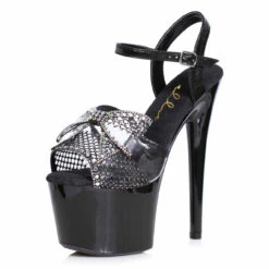 709-CHERYL, 7 Inch Heel Platform Sandal With Rhinestone Mesh CLEARANCE