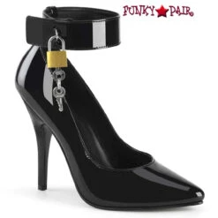 PLEASER SEDUCE-432, 5″ Heel Pump Wide Band Ankle Cuff W/Padlock