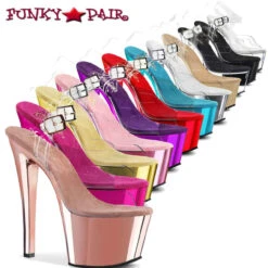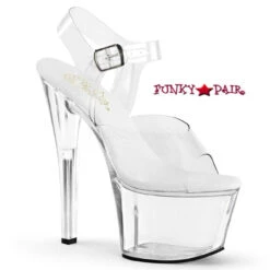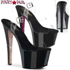 PLEASER SKY-308CHRS, 7 Inch Heel Platform Ankle Strap Sandal With Rhinestones