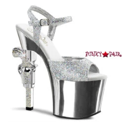 PLEASER Sky-309LG, 7 Inch Platform Sandal With Silver Holographic Glitters