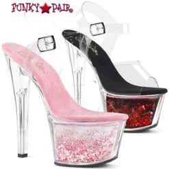 PLEASER Sky-308GF, 7 Inch Holographic Glitter Filled Platform Sandal CLEARANCE