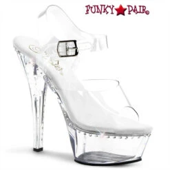 Pleaser Kiss-208LS, 6 Inch Clear Ankle Strap With One Line Rhinestone