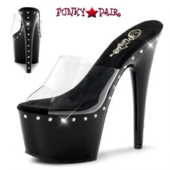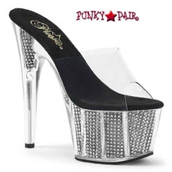 Pleaser | Adore-701SRS, 7 Inch Mule With Simulated Rhinestones Fill Bottom
