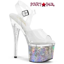 Pleaser | Adore-708HGI, 7 Inch Ankle Strap Platform With Holographic Insert