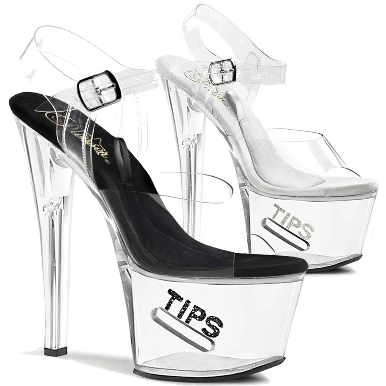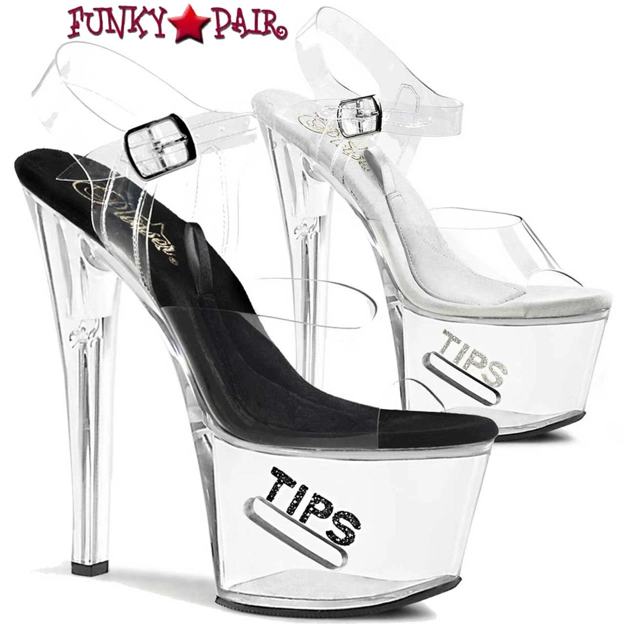 Pleaser Shoes TIP JAR-708-5 Approximately 7 Inch Stipper Shoes with Ankle Strap and “Tip” word with hole – base compartment accessible from the insole and a slot opening in the base